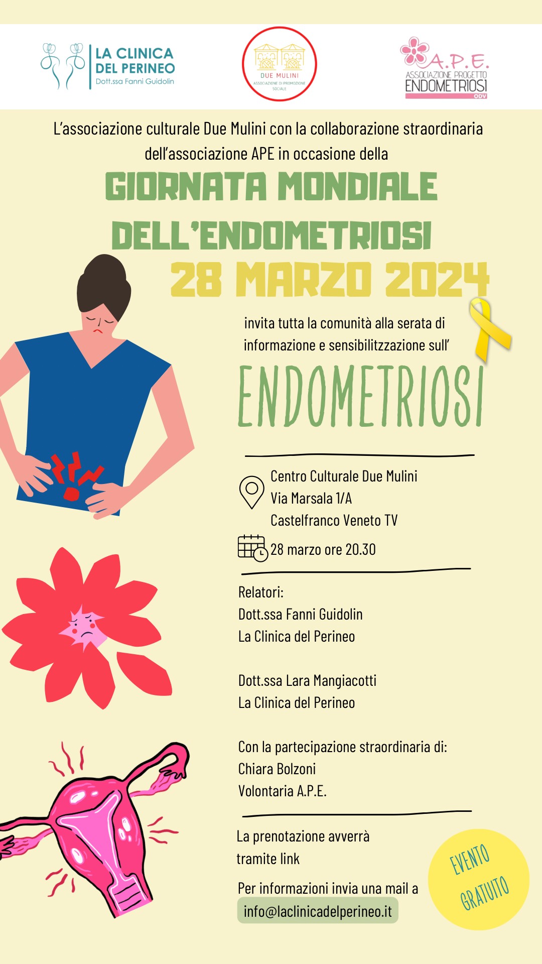 Giovedì 28 marzo ore 20.30 si terrà presso l’Associazione culturale DUE MULINI in Via Marsala 1/A di Castelfranco Veneto (TV) una conferenza dedicata all’endometriosi.