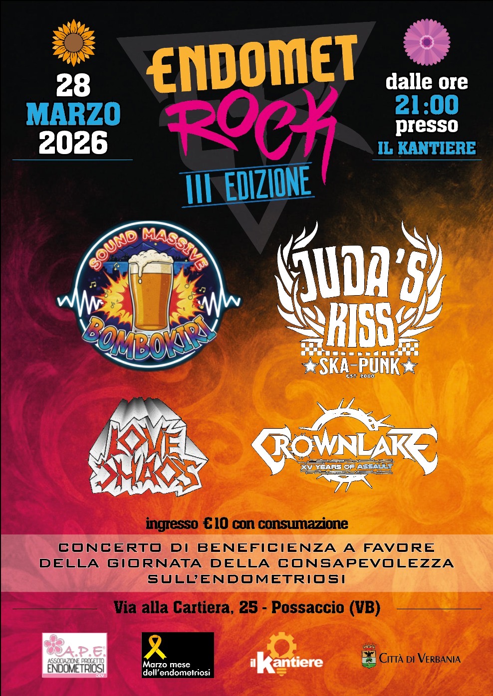 La giornata proseguirà in serata con EndometRock, concerto di beneficenza a sostegno della Giornata della Consapevolezza sull’Endometriosi.